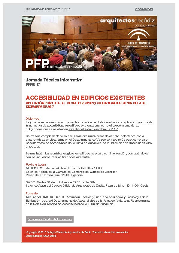 Jornada Técnica Informativa Jornada Técnica Informativa PFP03.17 ACCESIBILIDAD EN EDIFICIOS EXISTENTES APLICACIÓN PRÁCTICA DEL DECRETO 293/2009; OBLIGACIONES A PARTIR DEL 4 DE DICIEMBRE DE 2017 Objetivos La jornada se plantea como objetivo la aclaración de dudas relativas a la aplicación práctica de la normativa de accesibilidad en edificios existentes, así como el conocimiento de las…