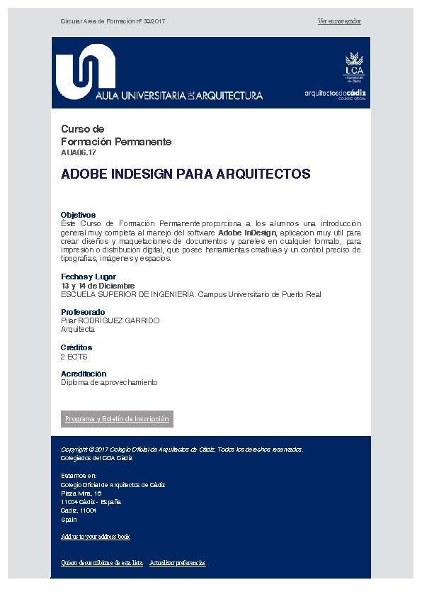 Aula Universitaria de Arquitectura Curso de Formación Permanente AUA06.17 ADOBE INDESIGN PARA ARQUITECTOS