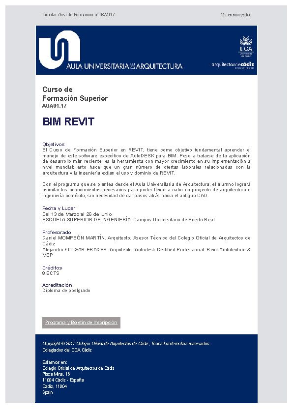 Aula Universitaria de Arquitectura Curso de Formación Superior AUA01.17. BIM REVIT