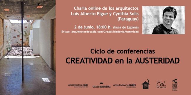 Ciclo ‘CREATIVIDAD en la AUSTERIDAD´. Luis Alberto ELGUE y Cynthia SOLÍS. Arquitectos. Paraguay Quinta conferencia del Ciclo ‘CREATIVIDAD en la  AUSTERIDAD; seis proyectos de arquitectura sostenible en Latinoamérica’, organizado por el Colegio Oficial de Arquitectos de Cádiz, en colaboración con el Ayuntamiento de Cádiz y la Casa de Iberoamérica y comisariado por nuestro compañero Alberto Jiménez Ruiz. Miércoles 2 de junio…