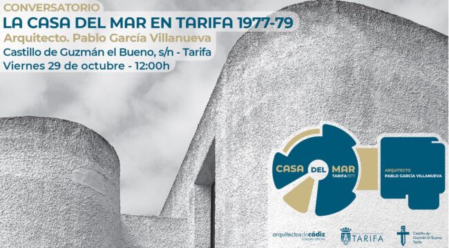 Conversatorio y Exposición «Casa del Mar en Tarifa. 1977-1979» en el Castillo de Guzmán el Bueno. Tarifa D. Francisco Ruiz Giráldez Alcalde del Excelentísimo Ayuntamiento Tarifa y Dña. Isabel Suraña Fernández Decana del Colegio Oficial de Arquitectos de Cádiz tienen el gusto de invitarle a la inauguración de la exposición y al conversatorio LA CASA DEL MAR…