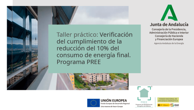 TALLER PRACTICO: VERIFICACIÓN DEL CUMPLIMIENTO DE LA REDUCCIÓN DEL 10% DEL CONSUMO DE ENERGIA FINAL.   TALLER PRACTICO: VERIFICACIÓN DEL CUMPLIMIENTO DE LA REDUCCIÓN DEL 10% DEL CONSUMO DE ENERGIA FINAL.  PROGRAMA PREEDesde la Agencia Andaluza de la Energía de la Junta de Andalucía nos trasladan, para su difusión entre nuestros colegiados, la información del Taller…