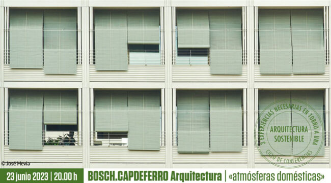 Ciclo «3 Arquitecturas sostenibles». Conferencia «ATMÓSFERAS DOMÉSTICAS». BOSCH.CAPDEFERRO ARQUITECTURA